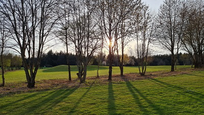 Viel Wald, alte Obstbäume und Wassergräben charakterisieren den im Einklang mit den natürlichen Gegebenheiten konstruierten Kurs.
